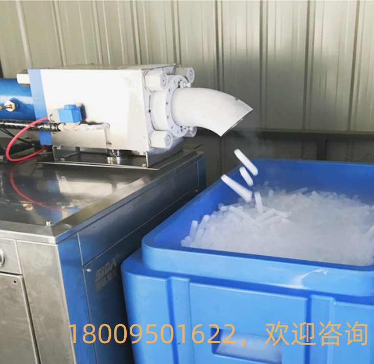 压缩液体二氧化碳在排入常压环境中因压力瞬间降低而出现结晶现象,形成形似白雪一样的粉状物质,即为干冰。通过一定工艺手段对粉末状干冰进行加压成型又可获得高密度的颗粒或块状干冰。市场上常见干冰即为工艺加工后的成型干冰,方便多领域使用。干冰非水冰,因融化后无水故称之为干冰。